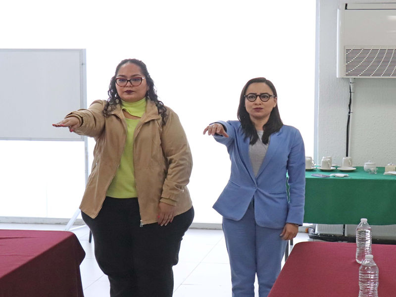 Las licenciadas Aída Garduño Estrada, y Karla Sánchez Hernández, coordinadora y subcoordinadora, respectivamente, de la Unidad de Género del Tribunal de Justicia Administrativa de Michoacán de Ocampo.